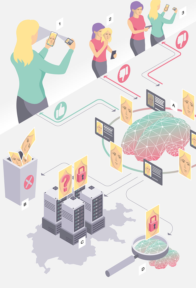 Gewisse Kunden von PXL Vision wie etwa Mobilfunkanbieter und Banken müssen die Daten jedoch per Gesetz speichern. Das Spin-off selbst braucht zudem authentische Bilder und Videos, um seine Algorithmen weiterzuentwickeln. Annas ID und Video landen deswegen verschlüsselt und anonymisiert in einem Schweizer Datencenter, wo sie in separaten Datenbanken gespeichert werden.